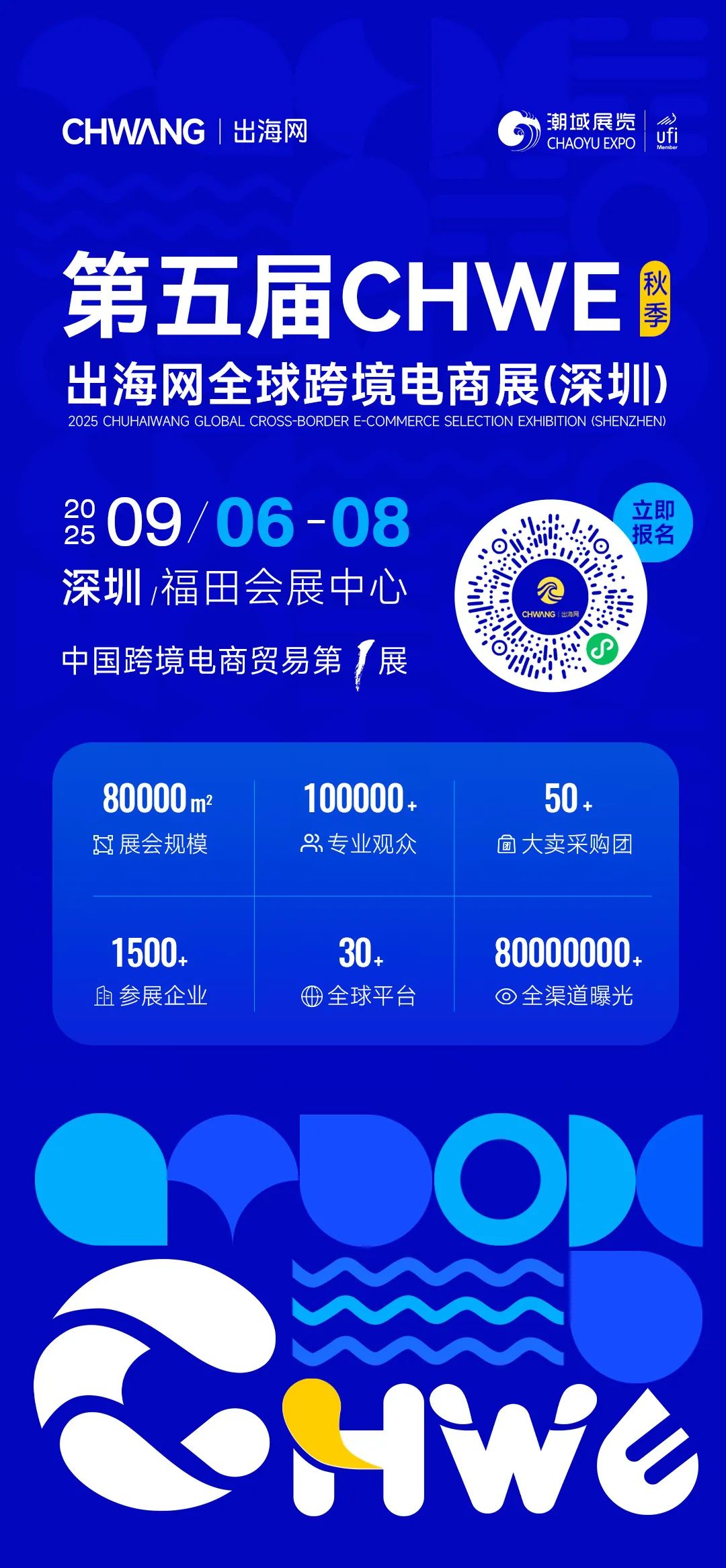 9月6日—9月8日,第五届CHWE出海网全球跨境电商展(深圳)秋季展即将在深圳福田会展中心盛大启幕!本次展会汇聚跨境电商行业的前沿趋势、头部平台与优质供应链资源,为跨境人打造一场深度交流与资源对接的盛会。