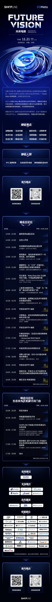 这不仅是议题的探讨,更是对未来增长路径的全面重构。届时,SHOPLINE核心管理层、Meta官方专家、AWS架构师、毕马威税务合伙人、亿邦智库首席分析师等数十位行业领军者将齐聚一堂,以前瞻视野与实战经验,为您揭示技术驱动增长的核心方法论,助力在复杂全球市场中构建可持续的竞争优势。