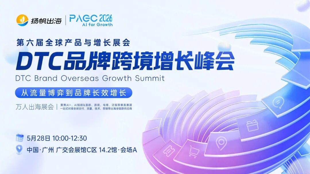 基于此背景,今年,由扬帆出海主办的第六届全球产品与增长展会(PAGC)重磅改版升级,聚焦AI驱动下的产品全球增长,开启全球互联网出海“智能杠杆”新时代。
