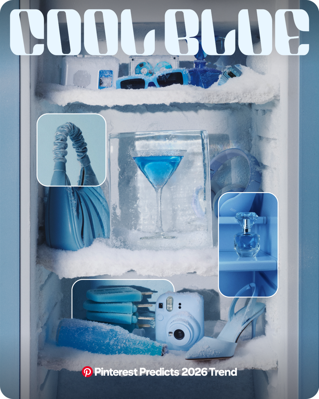 譬如,Pinterest Predicts 将 21 个趋势中的 Cool Blue (清冷蓝调)对应在食饮、时尚、美妆、庆祝活动等多个赛道,意味着这一元素可以应用在包装、产品、活动场景布置等多个维度,进而打造品牌 2026 年的对外印象。