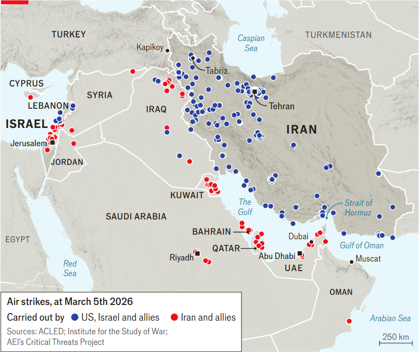 当地时间2月28日,美国与以色列对伊朗发动袭击后仅一小时,伊朗便迅速展开报复性反击,目标不仅包括以色列,还覆盖了沙特、阿联酋、卡塔尔、科威特、巴林、阿曼等所有驻有美军基地的国家。从以色列的特拉维夫、阿联酋的迪拜、卡塔尔的多哈,到巴林的麦纳麦,伊朗的导弹与无人机袭击范围之广、力度之大,在中东地区前所未有。