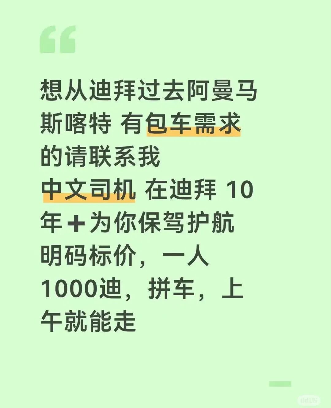 小红书上发布的迪拜-阿曼马斯喀特的拼车帖,单人车位接近2000人民币