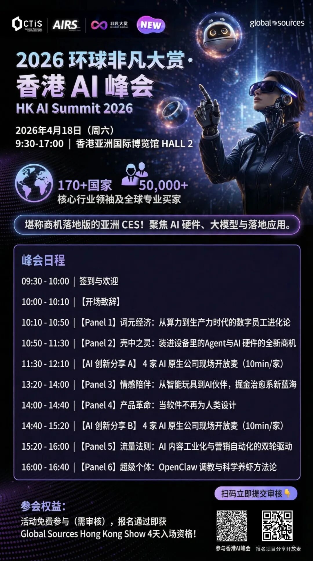 当"龙虾"席卷全网,下一个风口在哪?4月18日,香港见
