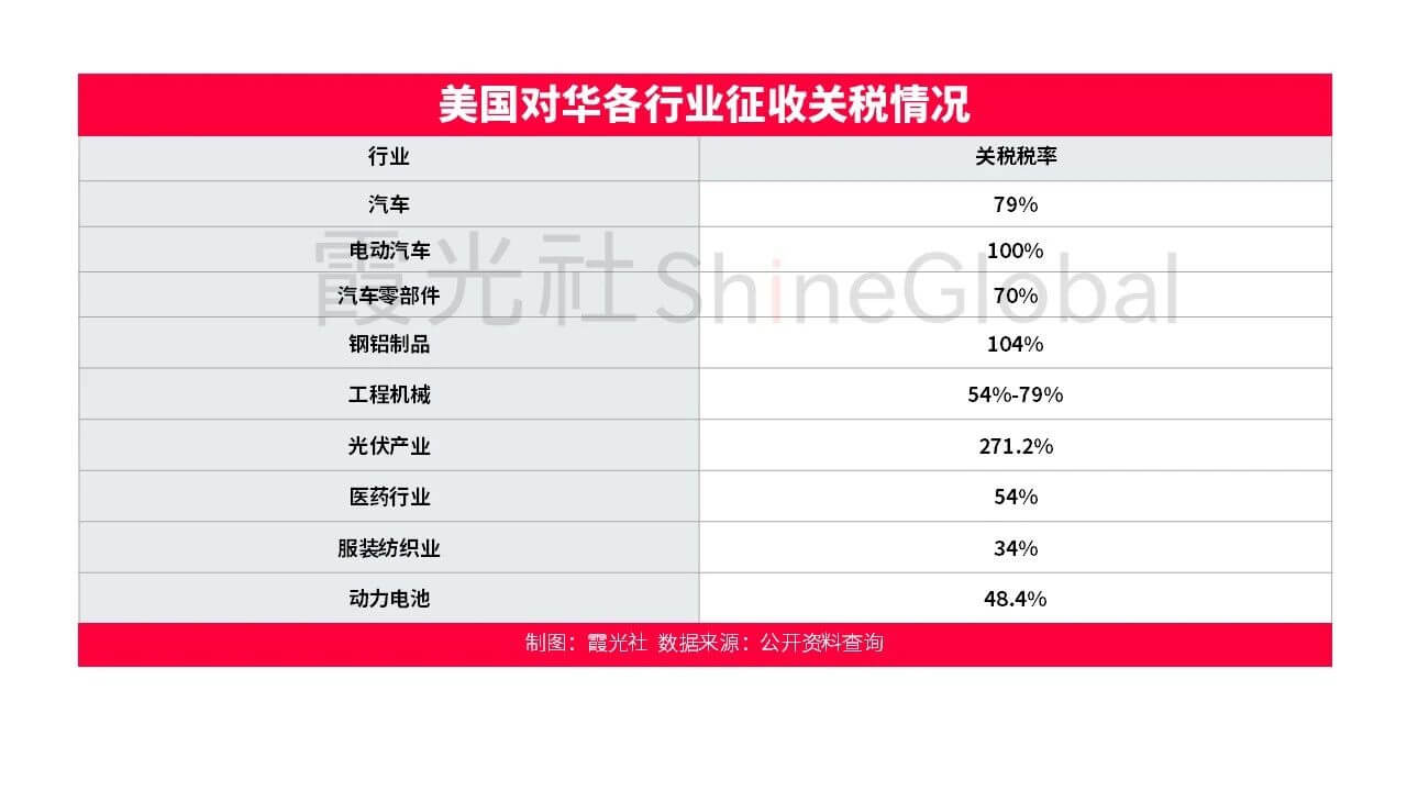 霞光社用两张图表,来呈现这场风暴下的关税变化。