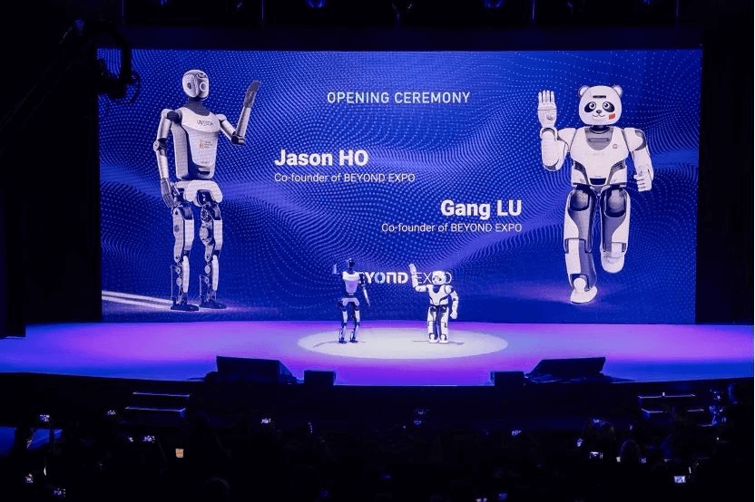 开幕式伊始,BEYOND Expo两位联合创始人——贺建东与卢刚博士,借助两位具身机器人展开现场对话,为这场盛会拉开了帷幕。在这个具有里程碑意义的五周年时刻,贺建东回顾了BEYOND Expo的成长与成就,为到场观众揭示了未来科技发展的边界与可能。