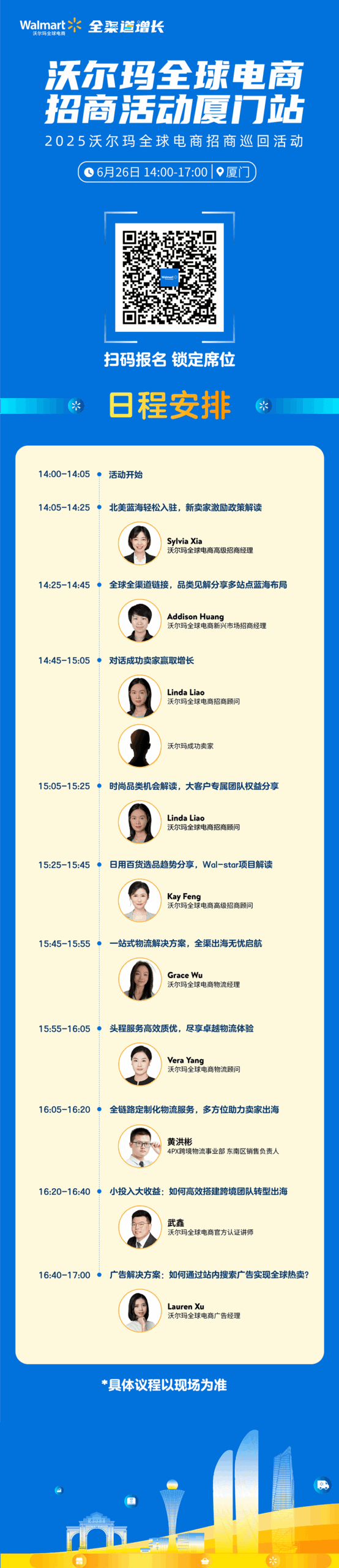 为助力本地卖家成长,6月26日沃尔玛全球电商城市招商巡回站厦门站开启!