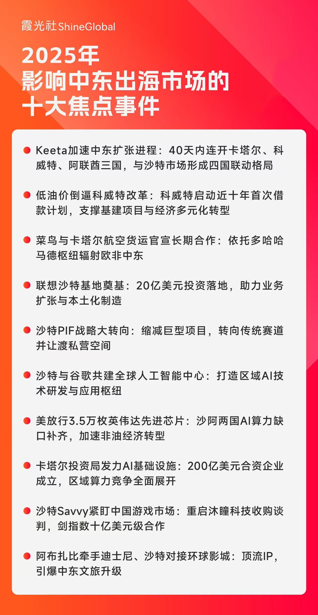 那么,回溯 2025 年中东市场的风云变幻与中企的布局轨迹,有哪些值得关注的趋势变革与出海机遇呢?